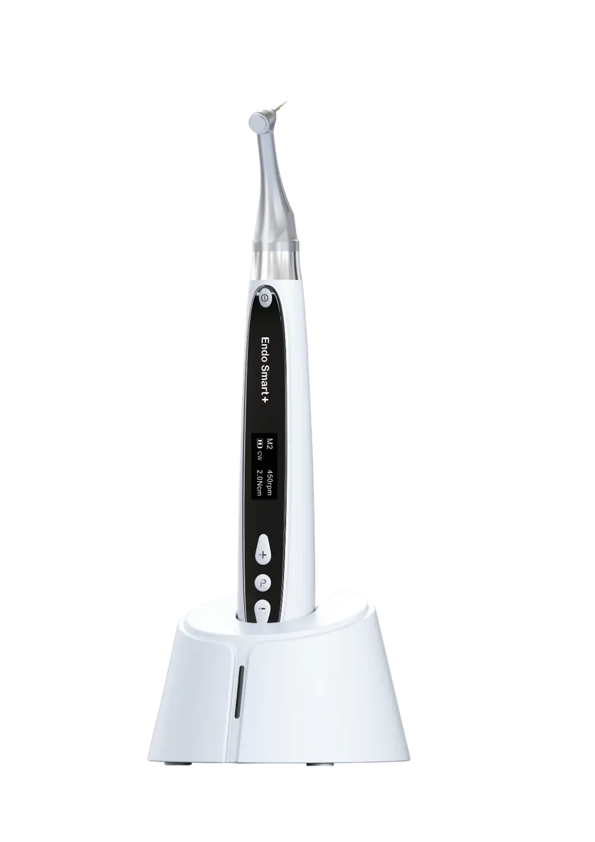 EndoSmart Plus is a cordless rotary endodontic motor used for root canal preparation. It features a high-performance brushless motor that delivers precise torque and smooth rotation for efficient endodontic procedures.