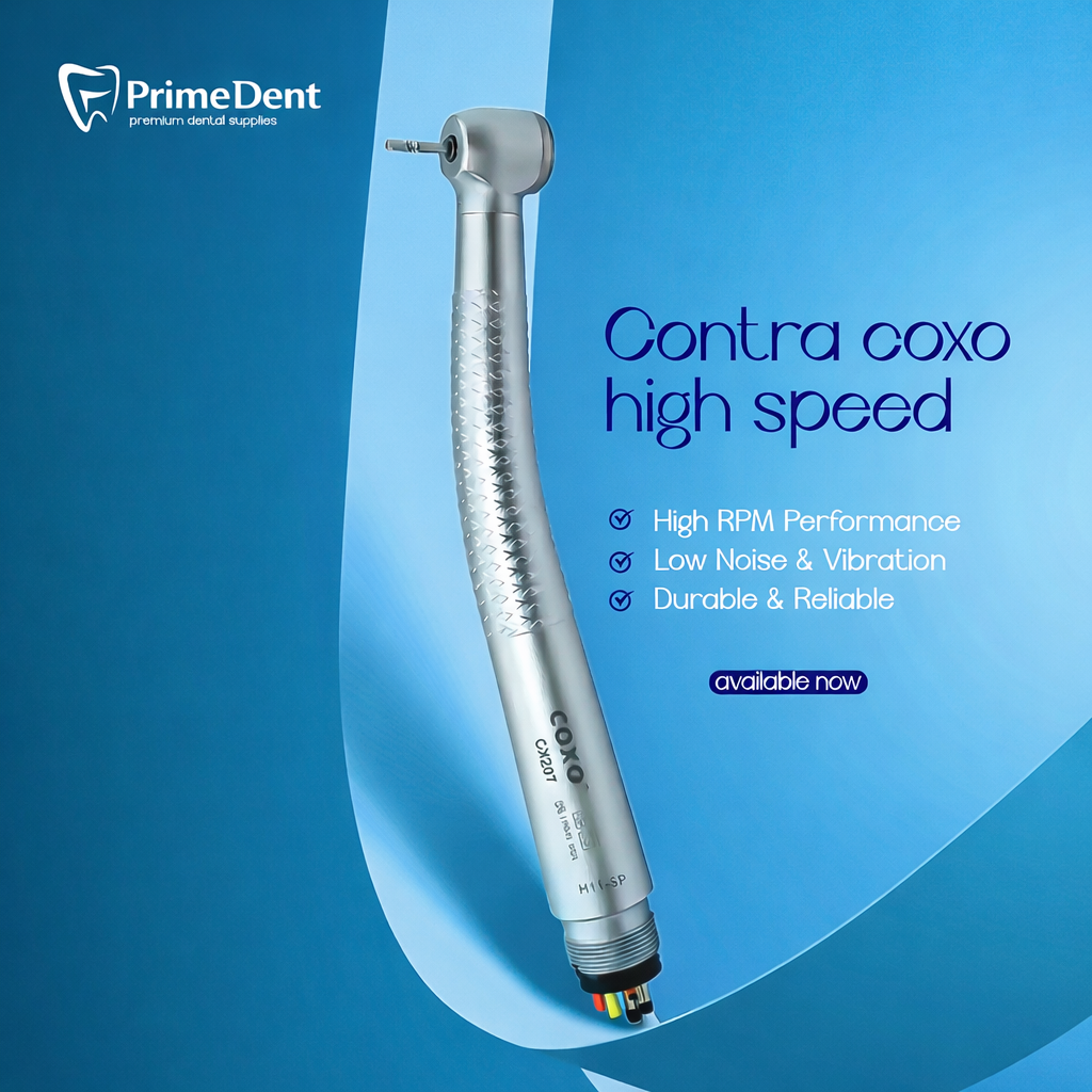 These are High-Speed Dental Turbine Handpieces from COXO Medical used in dental clinics for procedures such as tooth preparation, caries removal, cavity shaping, and restorative treatments with high efficiency and precision.